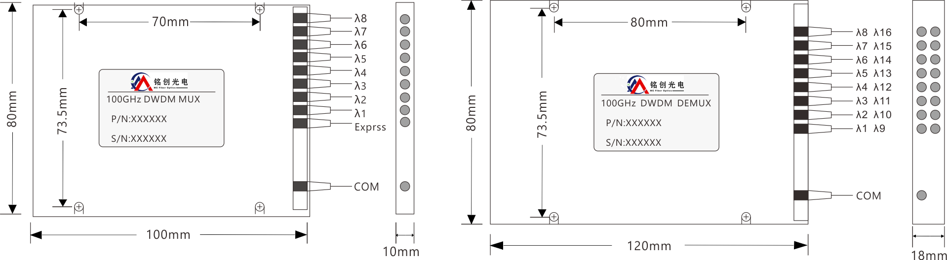 L100xW80xH10 or L120xW80xH18(合波&解波)